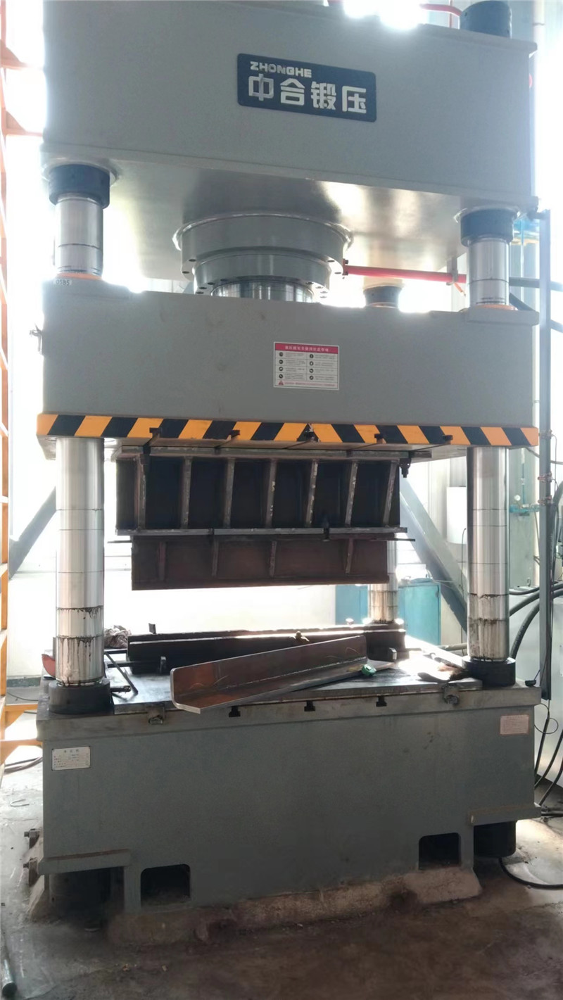 630噸金屬折彎壓型液壓機(jī)是用于金屬厚板的折彎壓型的設(shè)備,整體采用三梁四柱結(jié)構(gòu),利用金屬的延展性,通過模具將厚板壓型折彎。如下圖:
